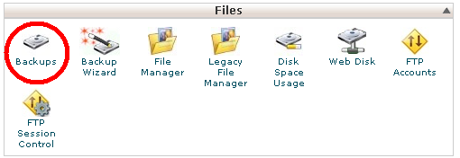 پس از ورود به صفحه اصلی کنترل پنل خود در قسمت Files وارد بخش Backups شوید