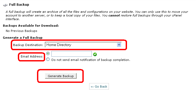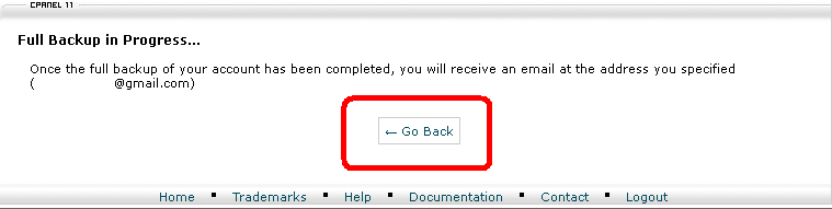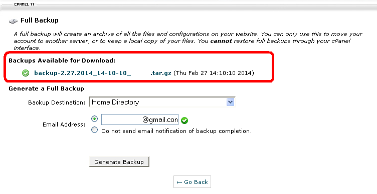 به این ترتیب یک بک آپ کامل از سایت خود تهیه کرده اید روی گزینه Go Back کلیک کنید.