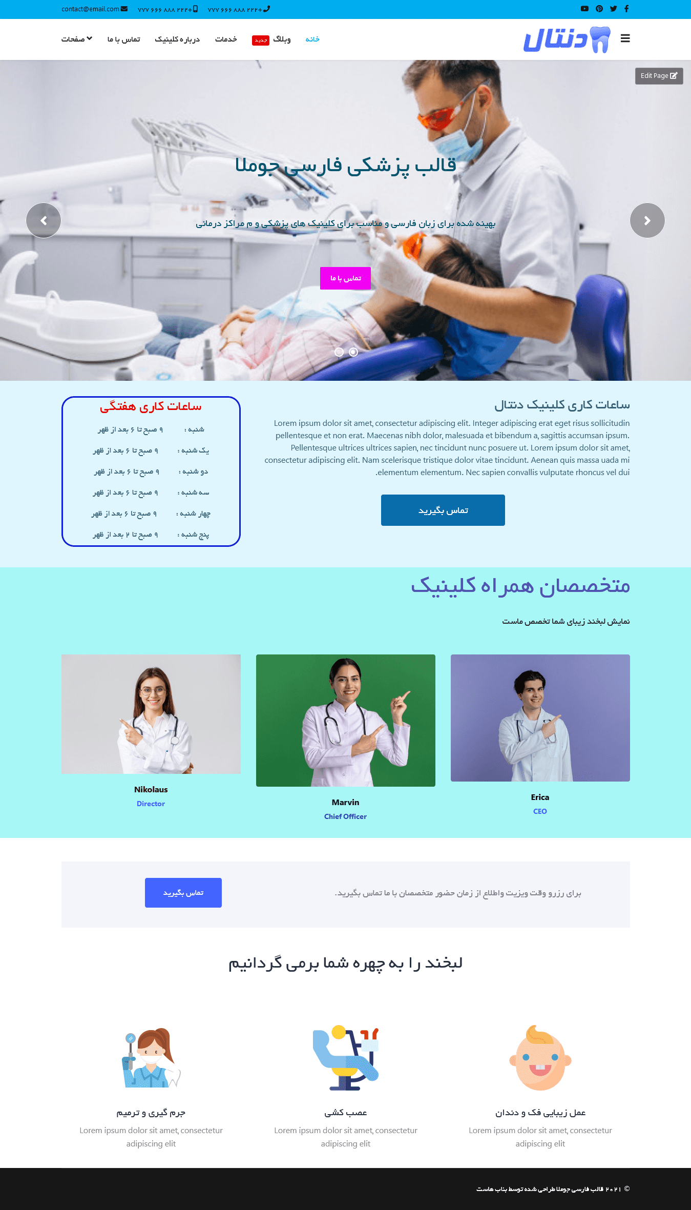 قالب جوملا فارسی دنتال یک بسته نصبی جدید است که توسط بناب هاست باز طراحی شده است. بهینه سازی و امکانات و صفحات آن برای زبان فارسی انجام شده تا بهترین نمایش را برای سایتهای فارسی زبان داشته باشد. این قالب به خاطر طراحی و رنگبندی زیبایی که دارد کاملا مناسب وب سایت های با موضوع پزشکی و دندان پزشکی است و می توان از آن به عنوان یک وب سایت جذاب برای کلینیک های پزشکی ، دندان پزشکی ، مراکز و مجتمع های پزشکان استفاده کرد. شما می توانید یک سیستم رزرو وقت ویزیت روی این سایت نصب کرده و از آن برای نوبت دهی بیماران و مراجعان استفاده کنید.